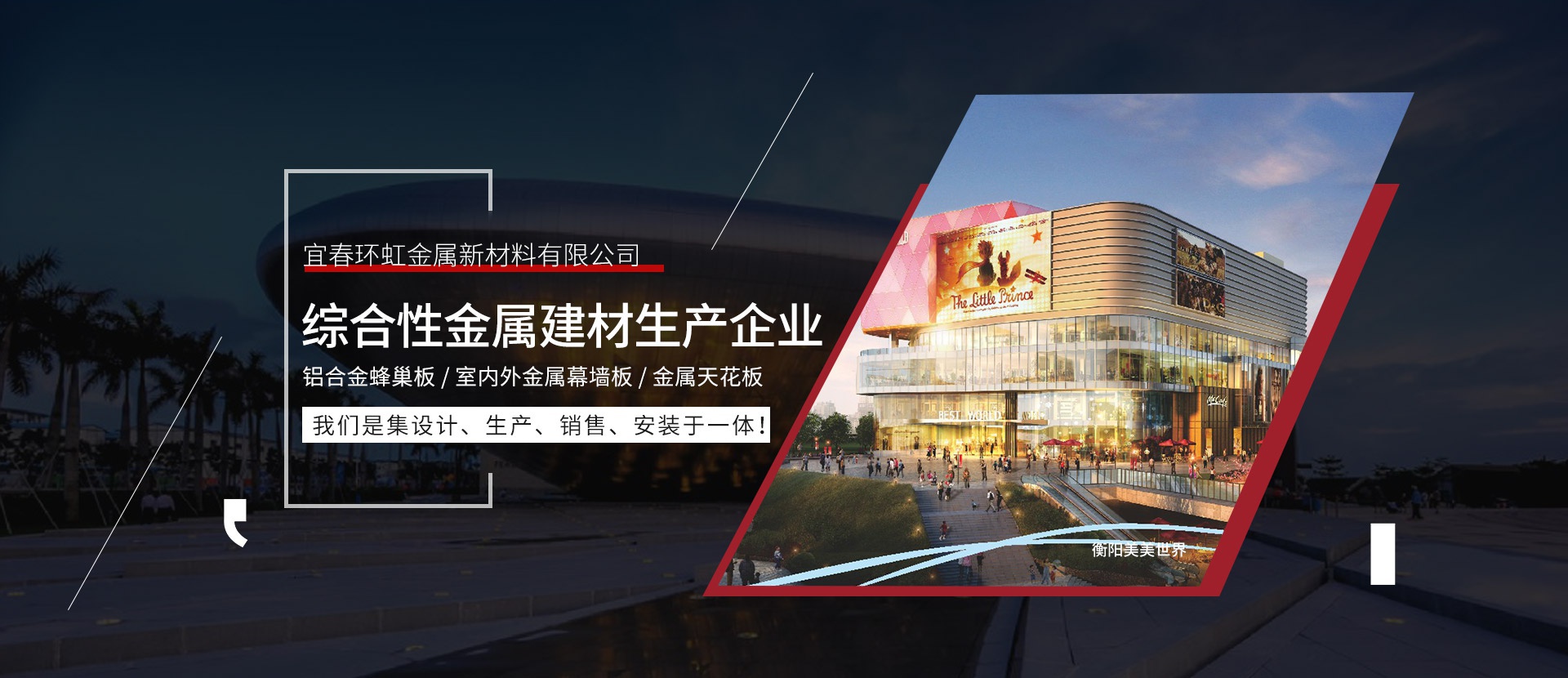宜春環虹金屬新材料有限公司總部位于廣東省佛山市創立于2011年。公司建設有高標準的現代化工業生產廠房及完備的生活配套設施,是一家生產鋁單板、鋁合金蜂窩板、室內外金屬幕墻板、金屬天花板等新型建筑裝飾材料的現代化企業。從產品設計到生產檢驗、施工安裝及服務都嚴格按照ISO09001和ISO14001 2015質量與環境保證體系實行嚴格的控制和管理,并著力為客戶提供優良的個性化服務和相關解決方案。公司擁有一批高素質、高水平的...
